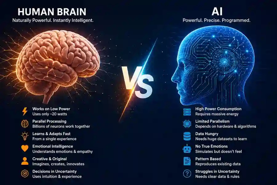 AI is powerful and useful for automation, calculations and data driven tasks. But the human brain is still faster and better at creativity, adaptability, emotional intelligence and energy efficiency. Instead of competition, humans and AI can collaborate to create a smarter future.